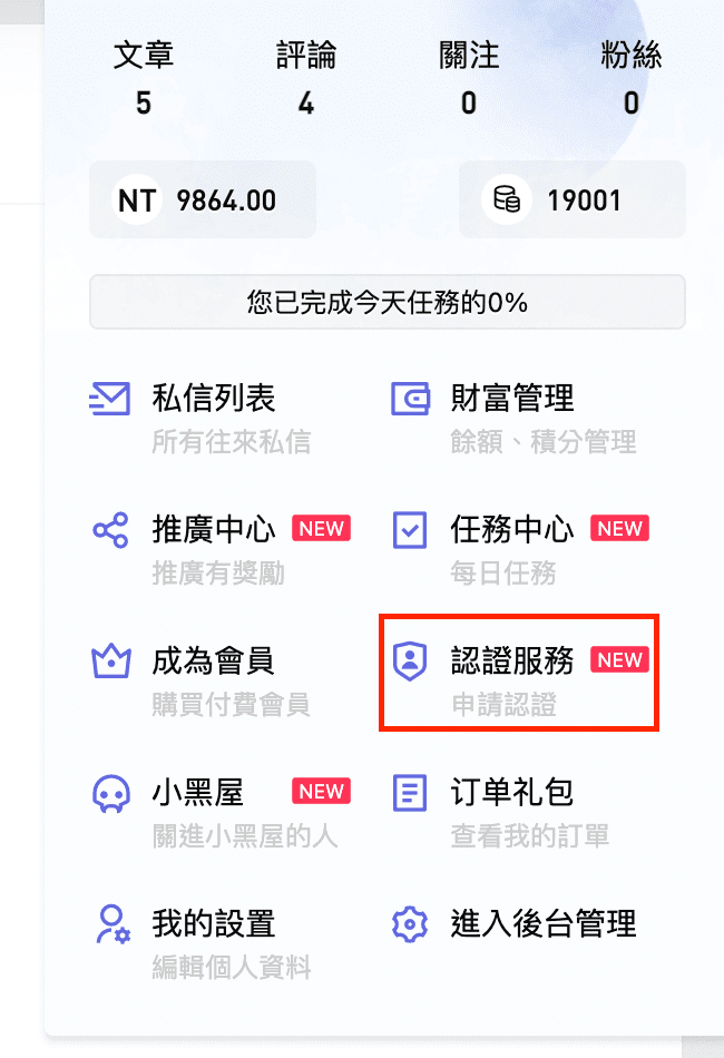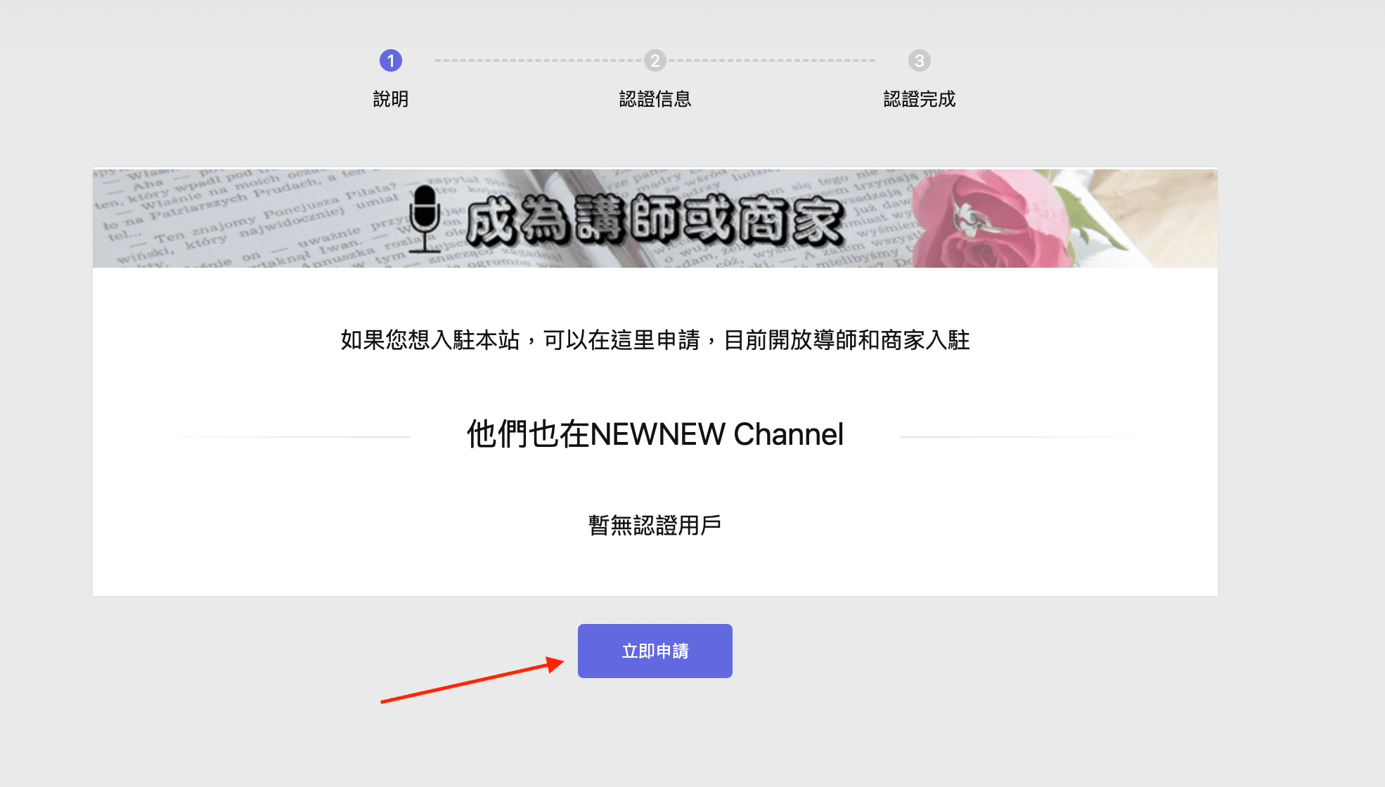 1.按照以下步驟完成申請講師的程序,請將鼠標移至右上角的圖標,會出現下圖: