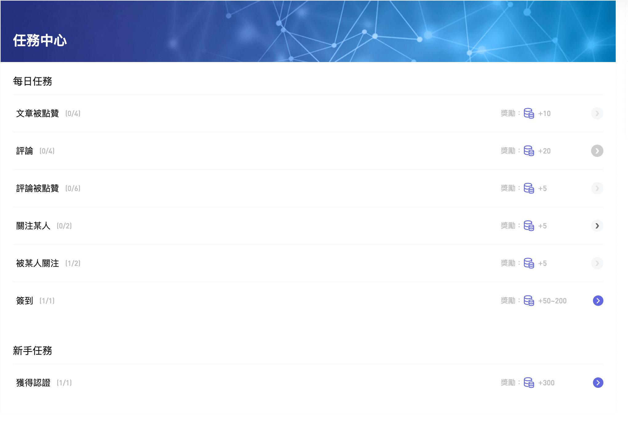 三.任務中心有多個目標,完成各項目標可獲取額外積分
