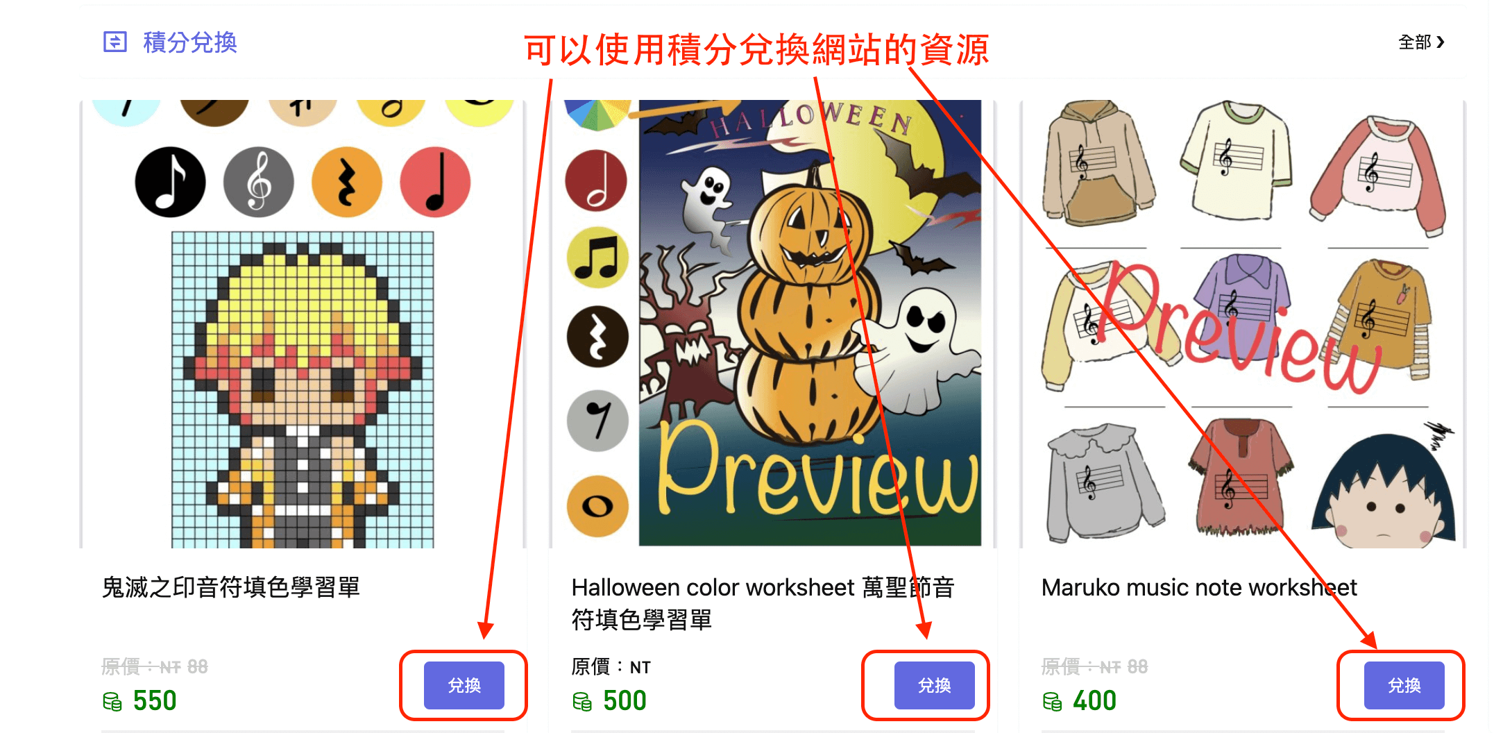 1.可以到商店區域,用積分換領網站資源