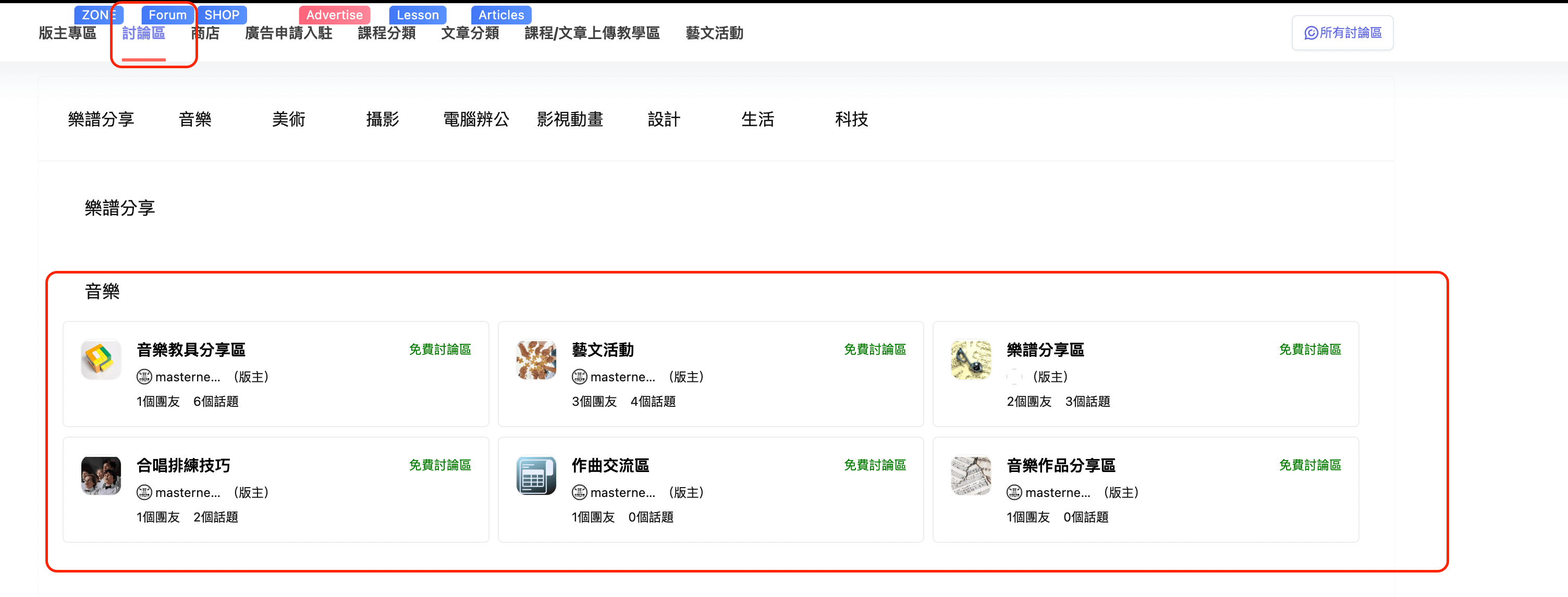 進入討論區,點選討論區的群組